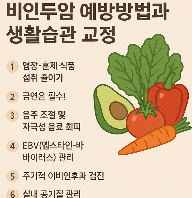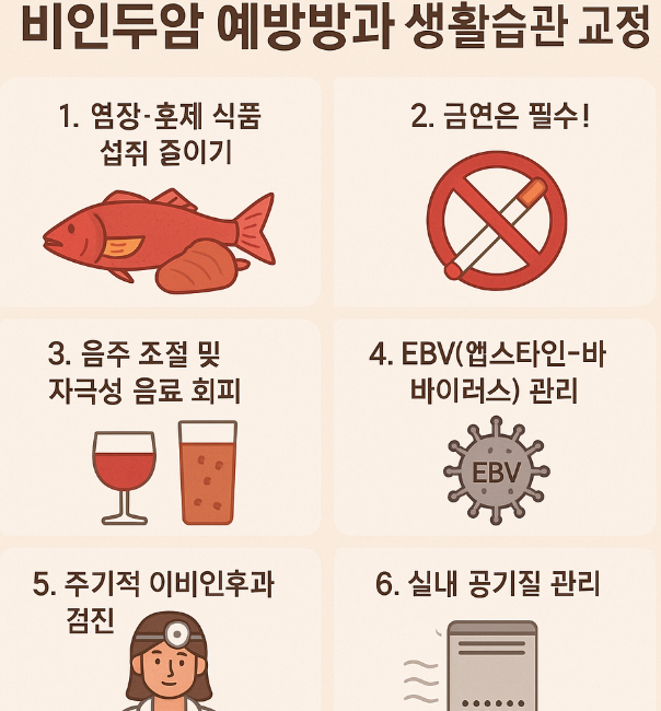 비인두암은 코 뒤쪽 깊숙한 부위인 비인두에 생기는 악성종양으로, 초기 증상이 뚜렷하지 않아 조기 발견이 어렵고 진단 시점에는 이미 병이 진행된 경우가 많습니다. 그렇기 때문에 예방과 생활습관 개선이 무엇보다 중요합니다. 오늘은 비인두암 예방방법, 그리고 이를 위한 생활습관 교정법을 자세히 살펴보겠습니다.
