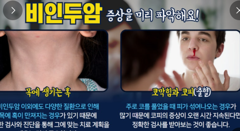 목에 덩어리가 만져지거나 피 섞인 콧물, 잦은 코피 등이 동반되면 이비인후과 내시경 검사가 필요합니다.