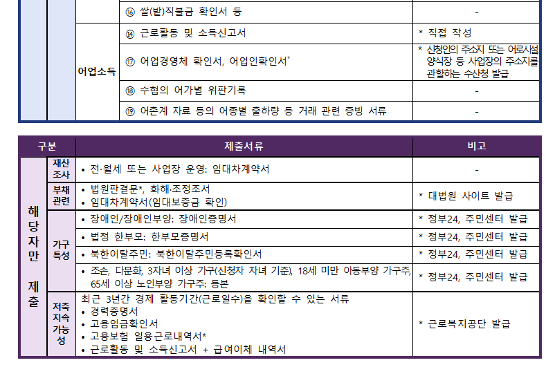 | 사업소득자용 증빙 | 사업자등록증, 매출전표 등 (프리랜서 포함) |