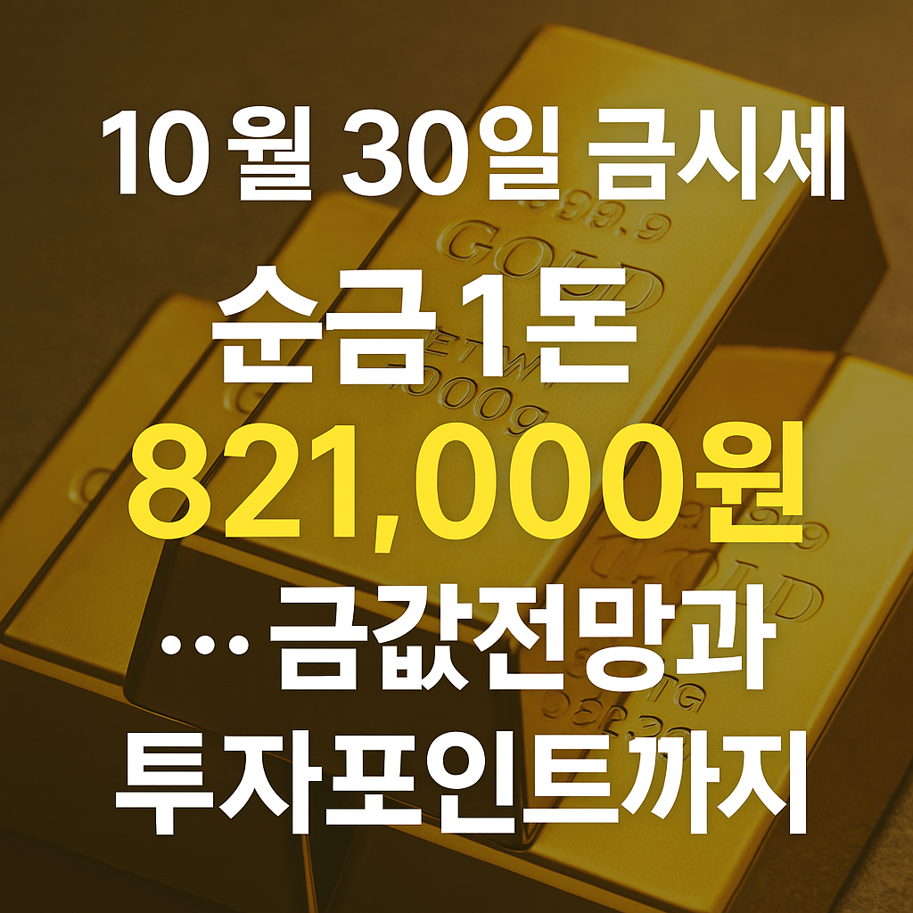 오늘자 금시세를 확인해보면, 금값의 변동성이 심화되고 있는 가운데 투자자들의 관심이 다시 집중되고 있습니다. 특히 2025년 10월 30일 기준, 순금 1돈(24K, 3.75g)의 시세는 구매가 821,000원, 판매가 690,000원으로 확인되고 있습니다.